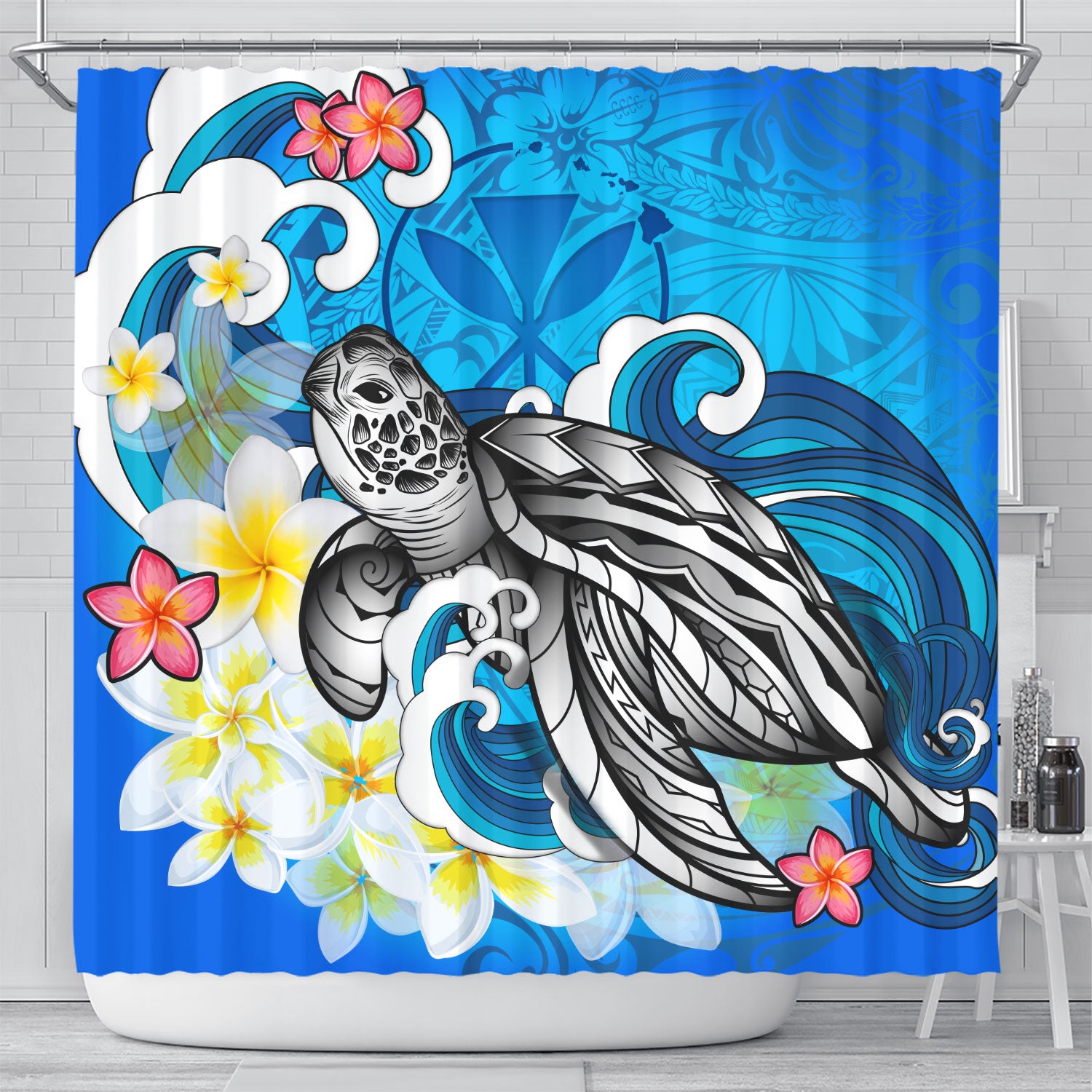 Hawaii Shower Curtain Turtle With Plumeria Flowers