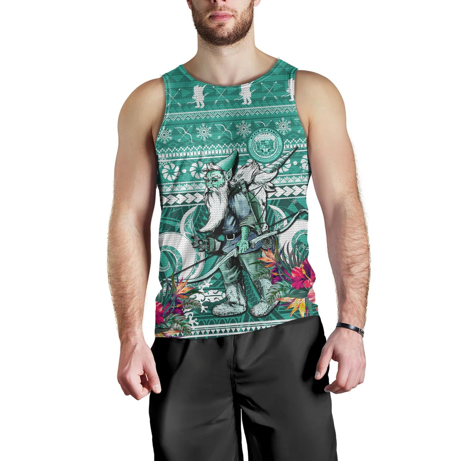 Hawaii Tank Top Custom Ugly Gnome Packing Out a Unicorn Hawaiian Christmas