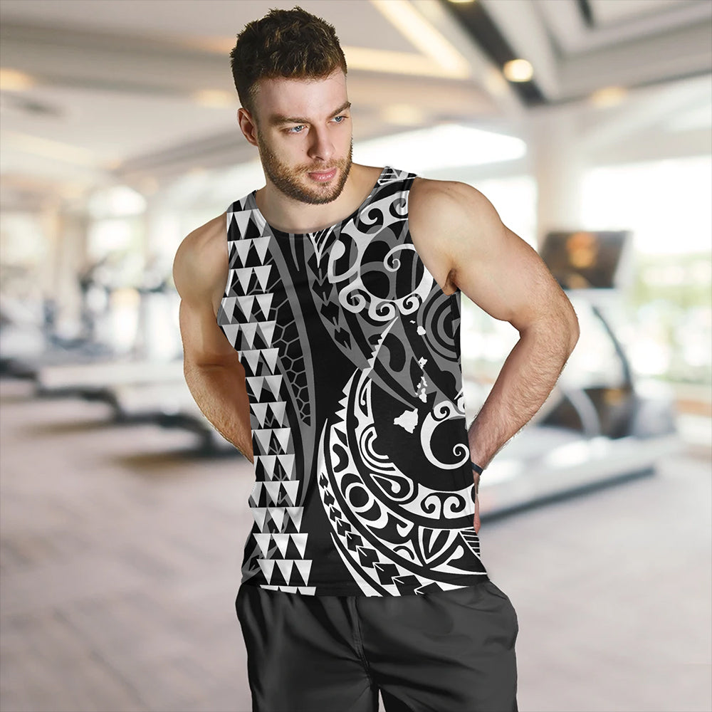Hawaii Tank Top Hawaiian Map Kakau Style White