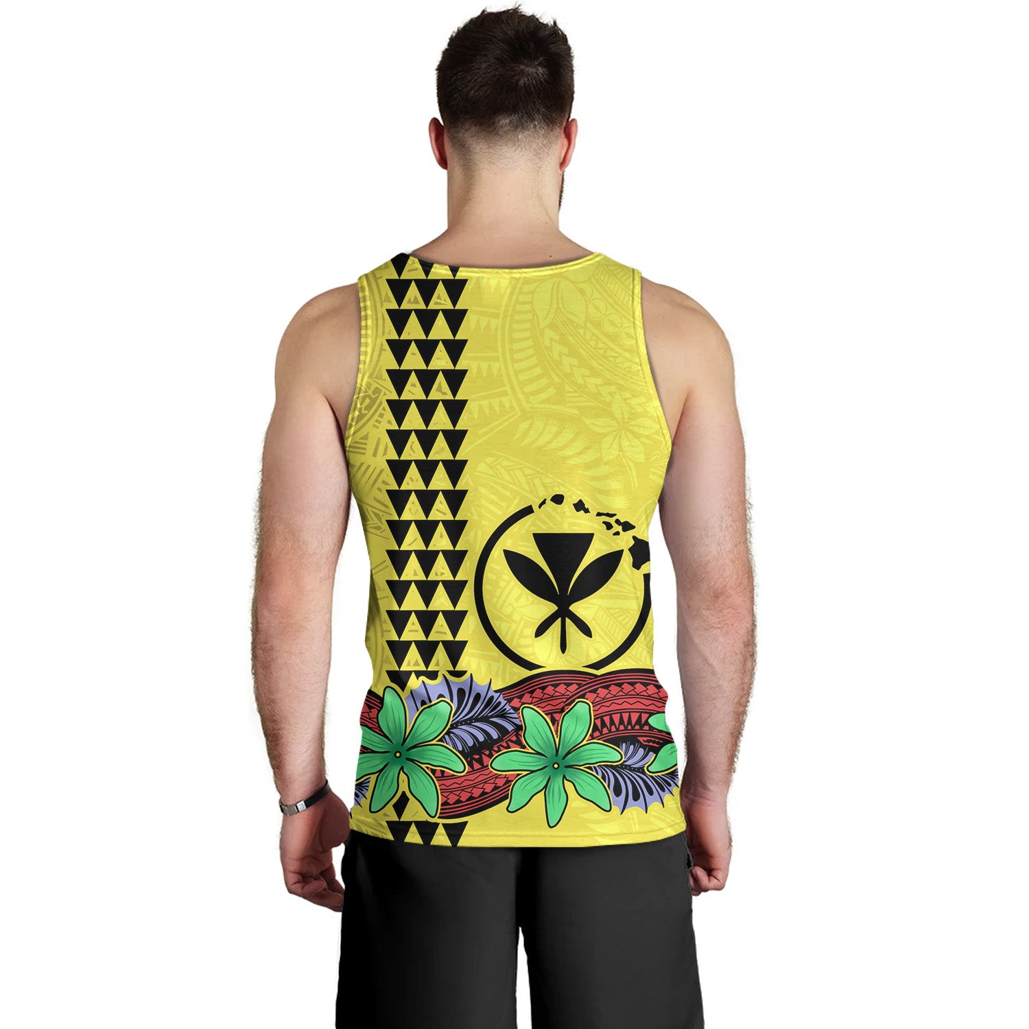 Hawaii Tank Top Kanaka Maoli Map Seal Tropical Flowers Yellow Color