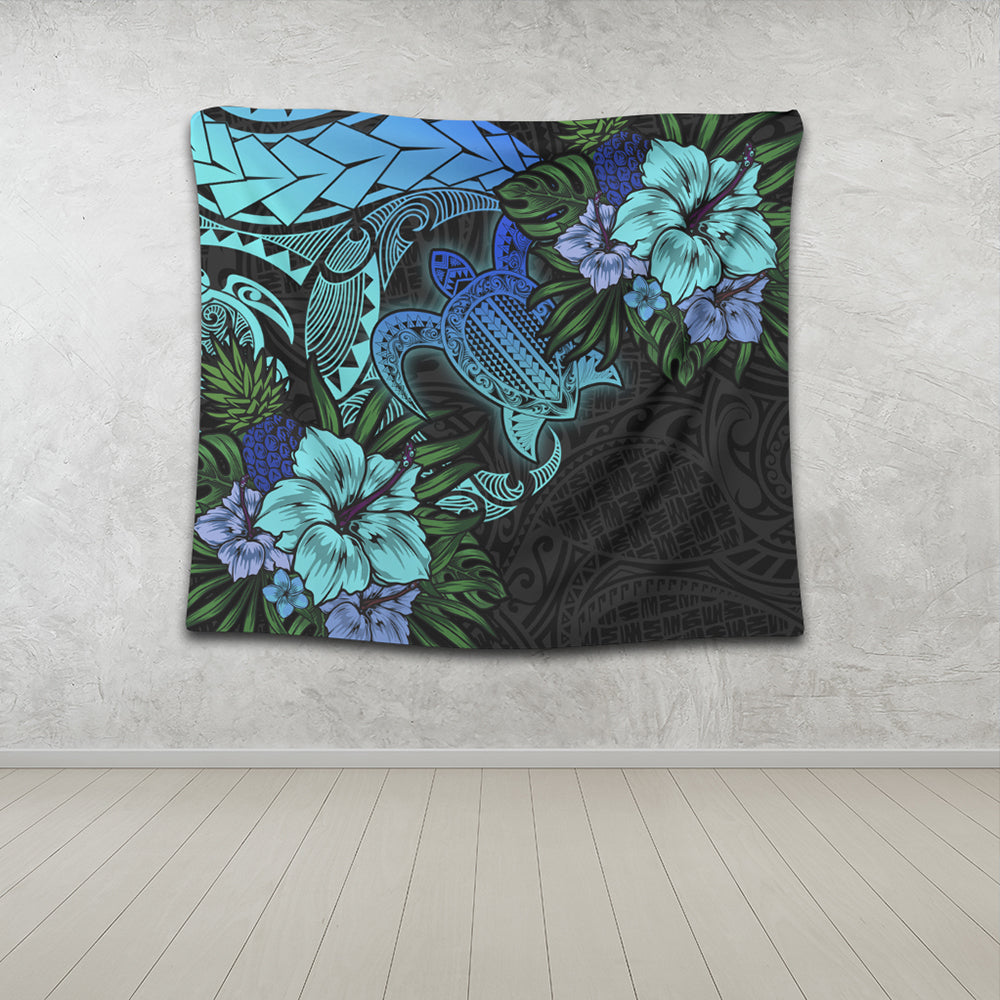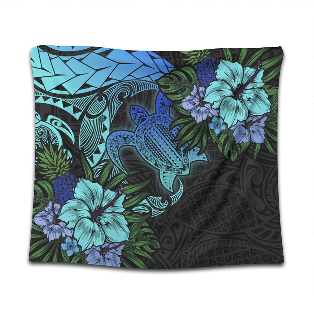 Hawaii Tapestry Hawaii Polynesian Turtle Tropical Blue Gardient Blue