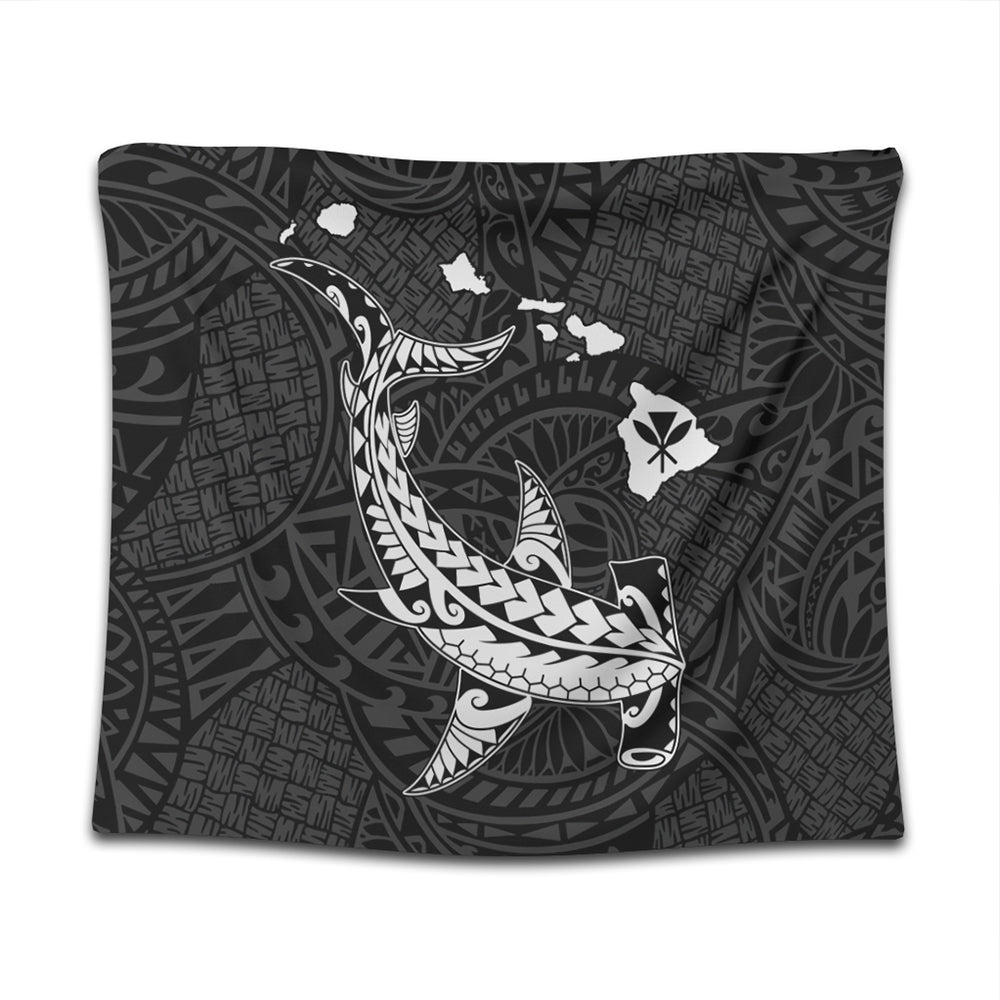 Hawaii Tapestry Hawaiian Native Map Hammerhead Shark White