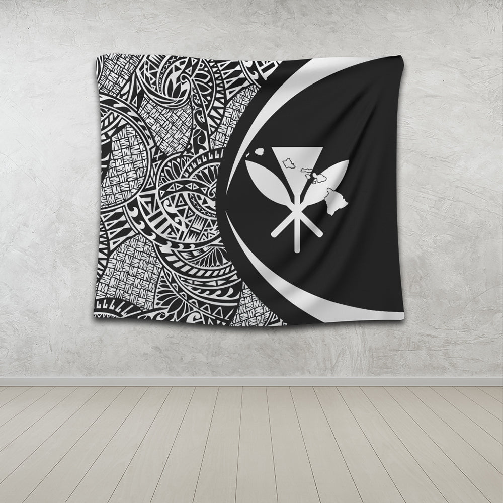 Hawaii Tapestry Kanaka Maoli Hawaiian Map Lauhala White Circle