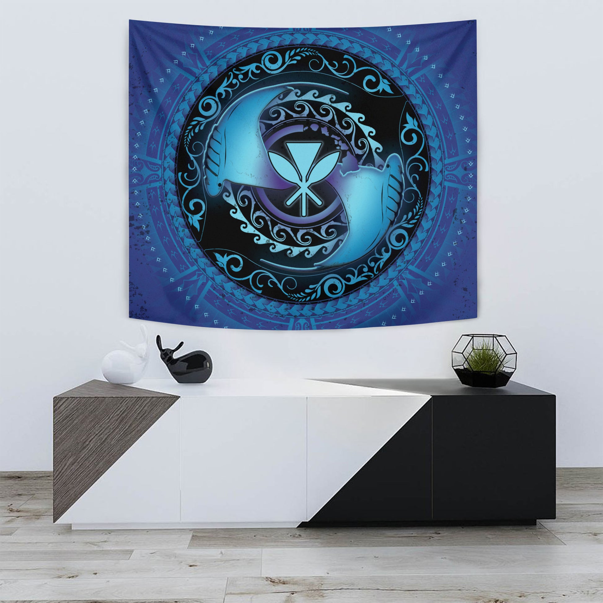 Hawaii Tapestry Manta Ray Couple Polynesian Ocean Style