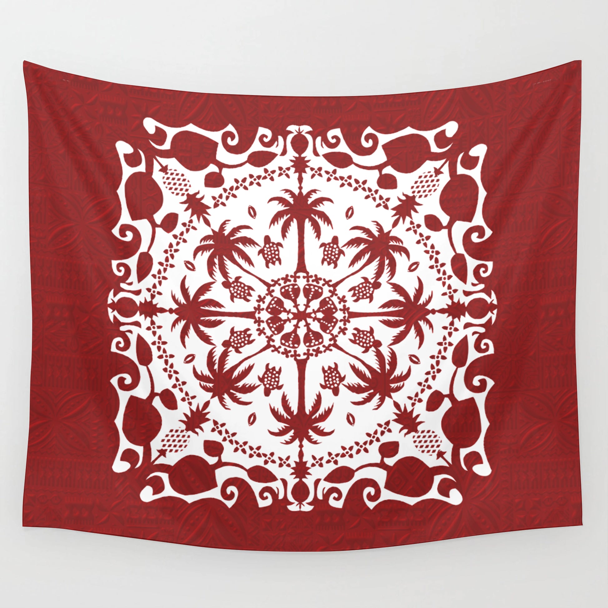 Hawaii Tapestry Red Hawaii Pattern Palm Trees and Turtles Polynesian