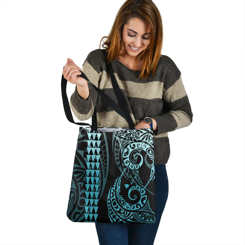 Hawaii Tote Bag Map Kakau Style Turquoise