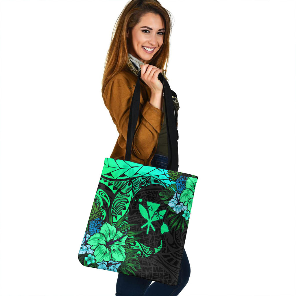 Hawaii Tote Bag Polynesian Turtle Tropical Gardient Green