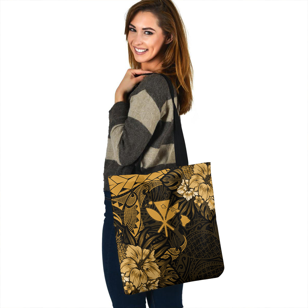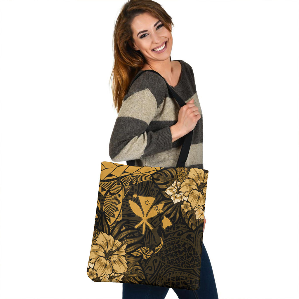 Hawaii Tote Bag Polynesian Turtle Tropical Golden