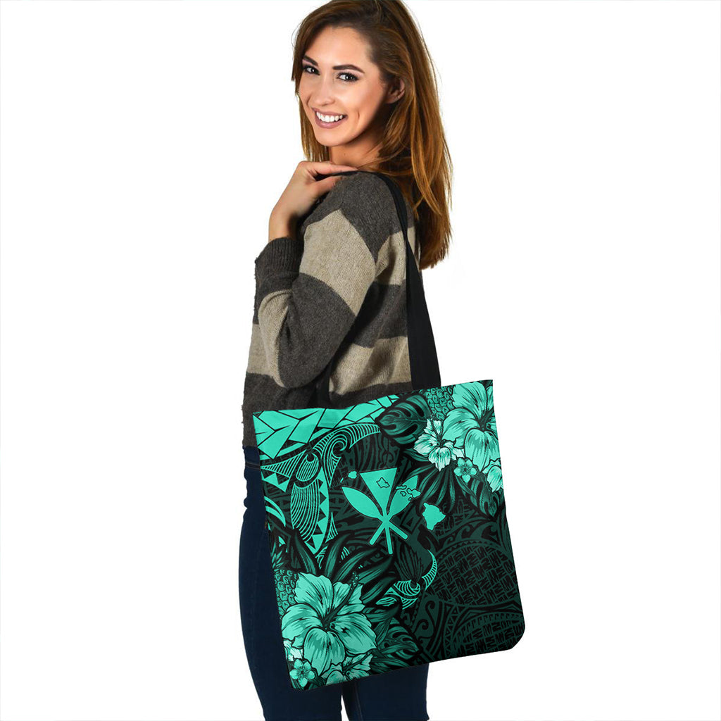 Hawaii Tote Bag Polynesian Turtle Tropical Patina Green