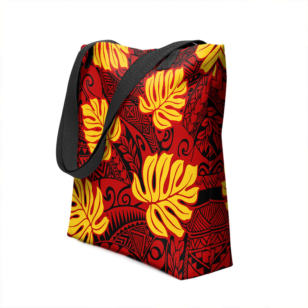 Hawaii Tote Bag Tribal Polynesia Flag Fabric Leaves