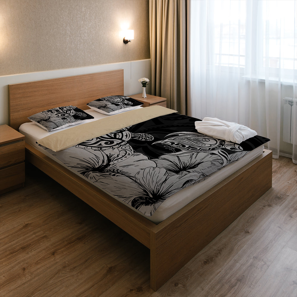 Hawaii Turtle Bedding Set Polynesian Hibiscus Art Gray