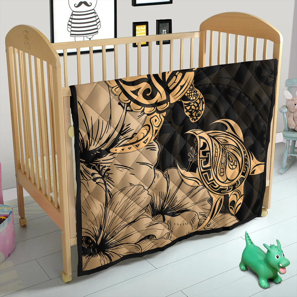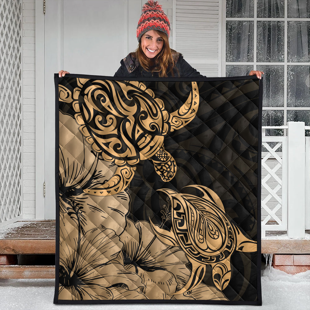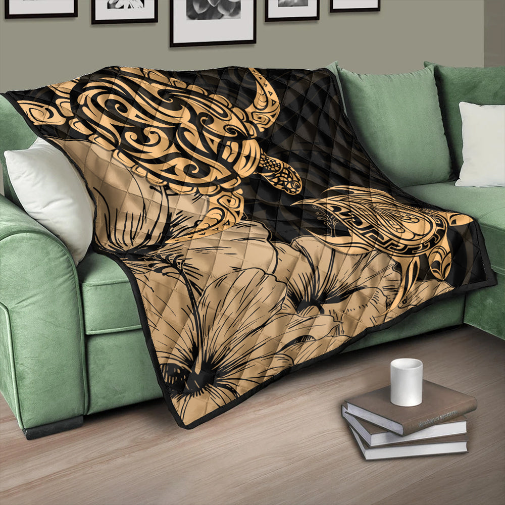 Hawaii Turtle Premium Quilt Polynesian Hibiscus Art Gold