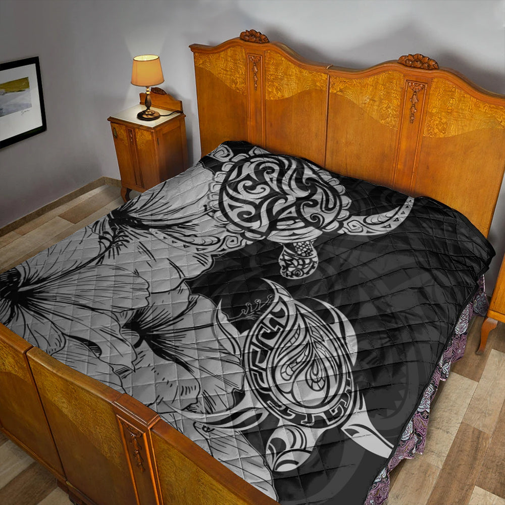 Hawaii Turtle Premium Quilt Polynesian Hibiscus Art Gray