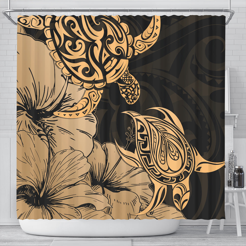 Hawaii Turtle Shower Curtain Polynesian Hibiscus Art Gold