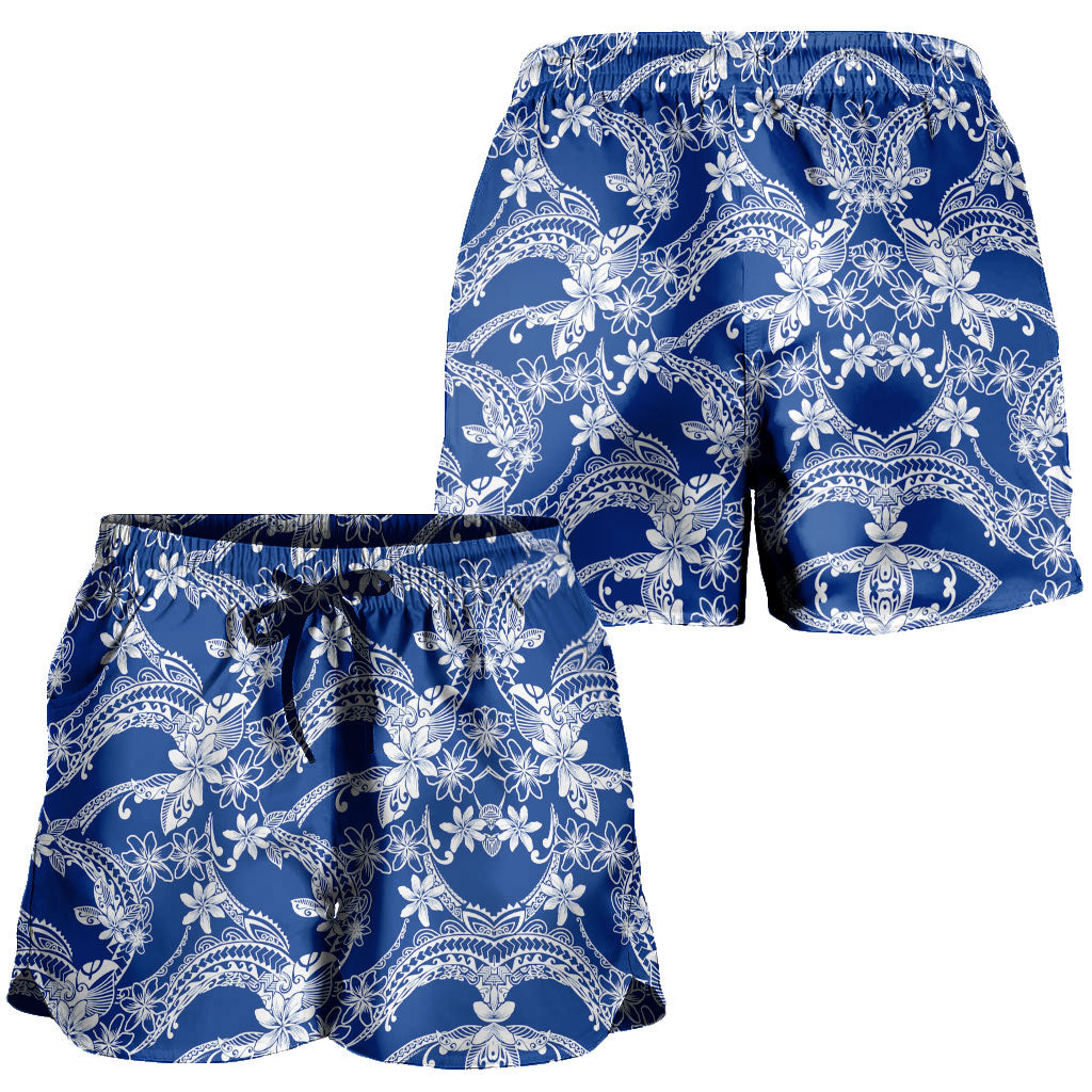 Hawaii Women Shorts Polynesian Print Fabric And Flower Blue