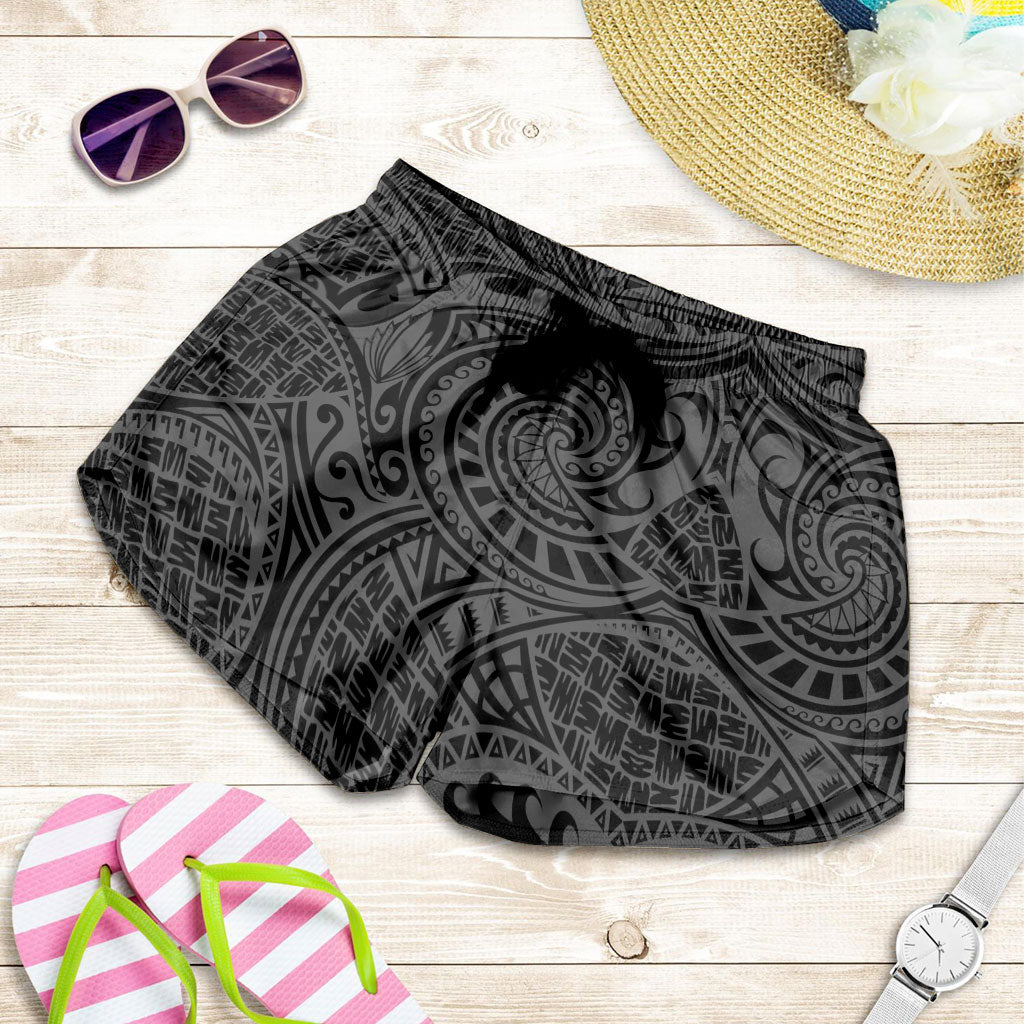 Hawaii Women Shorts Polynesian Tribal Pattern Grey