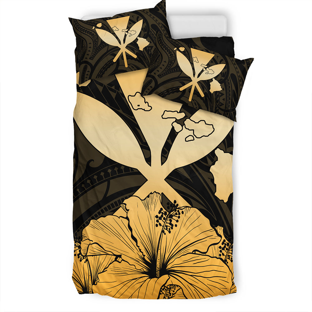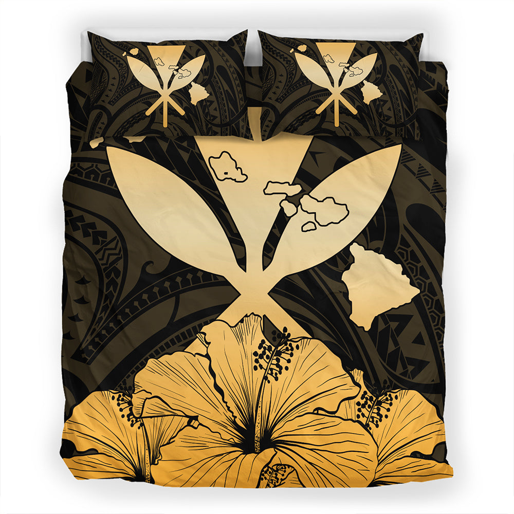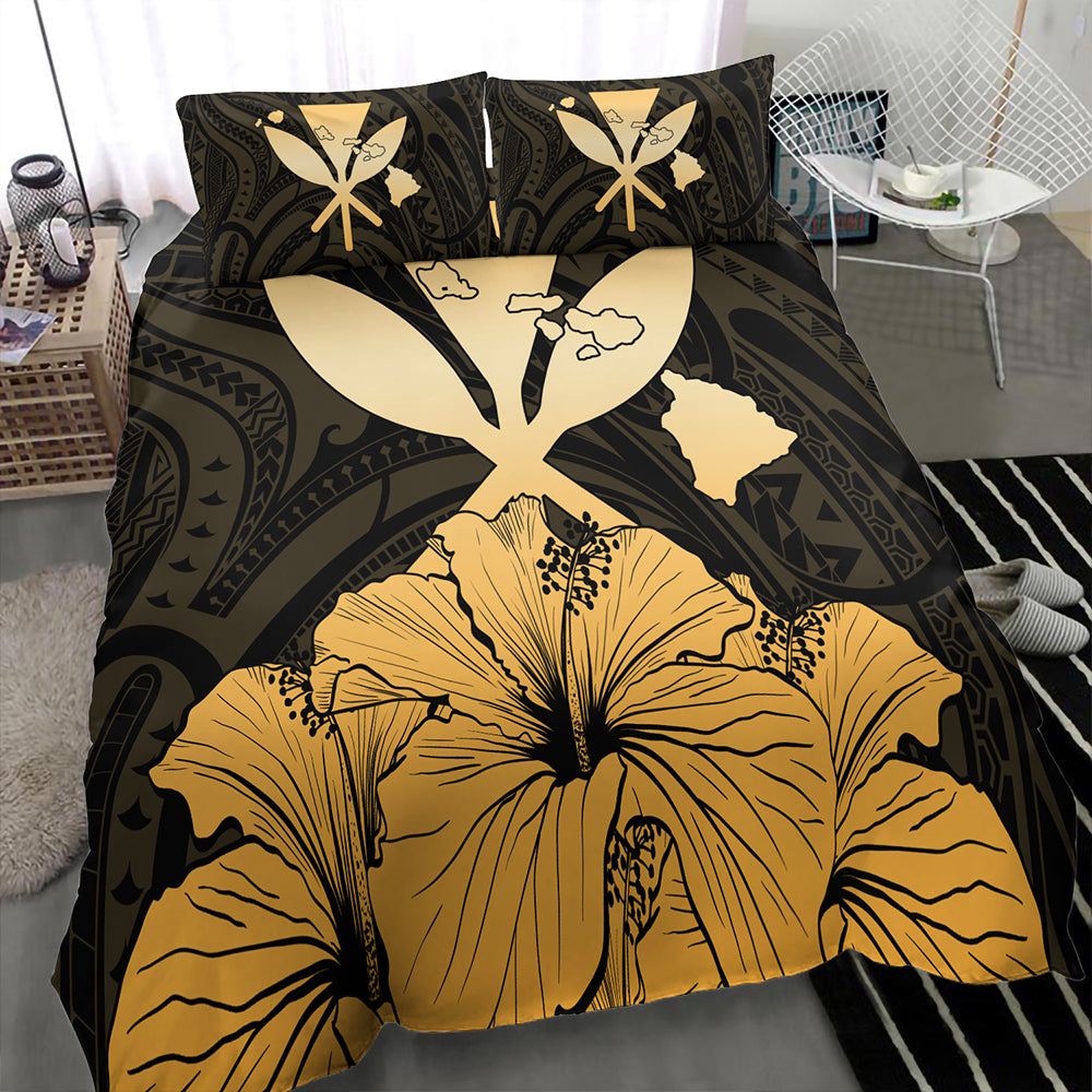 Hawaiian Bedding Set Kanaka Maoli Hibiscus Polynesian Love Gold