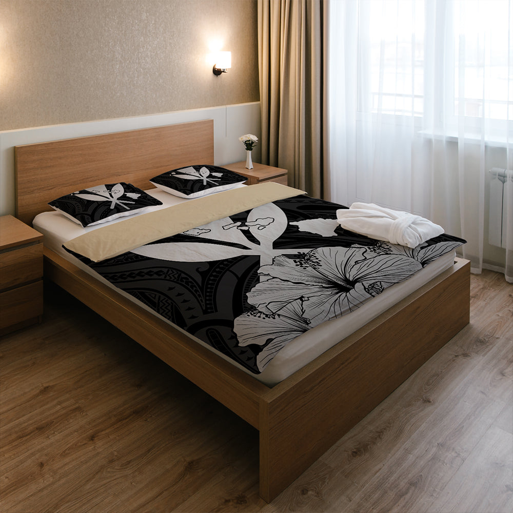 Hawaiian Bedding Set Kanaka Maoli Hibiscus Polynesian Love Gray
