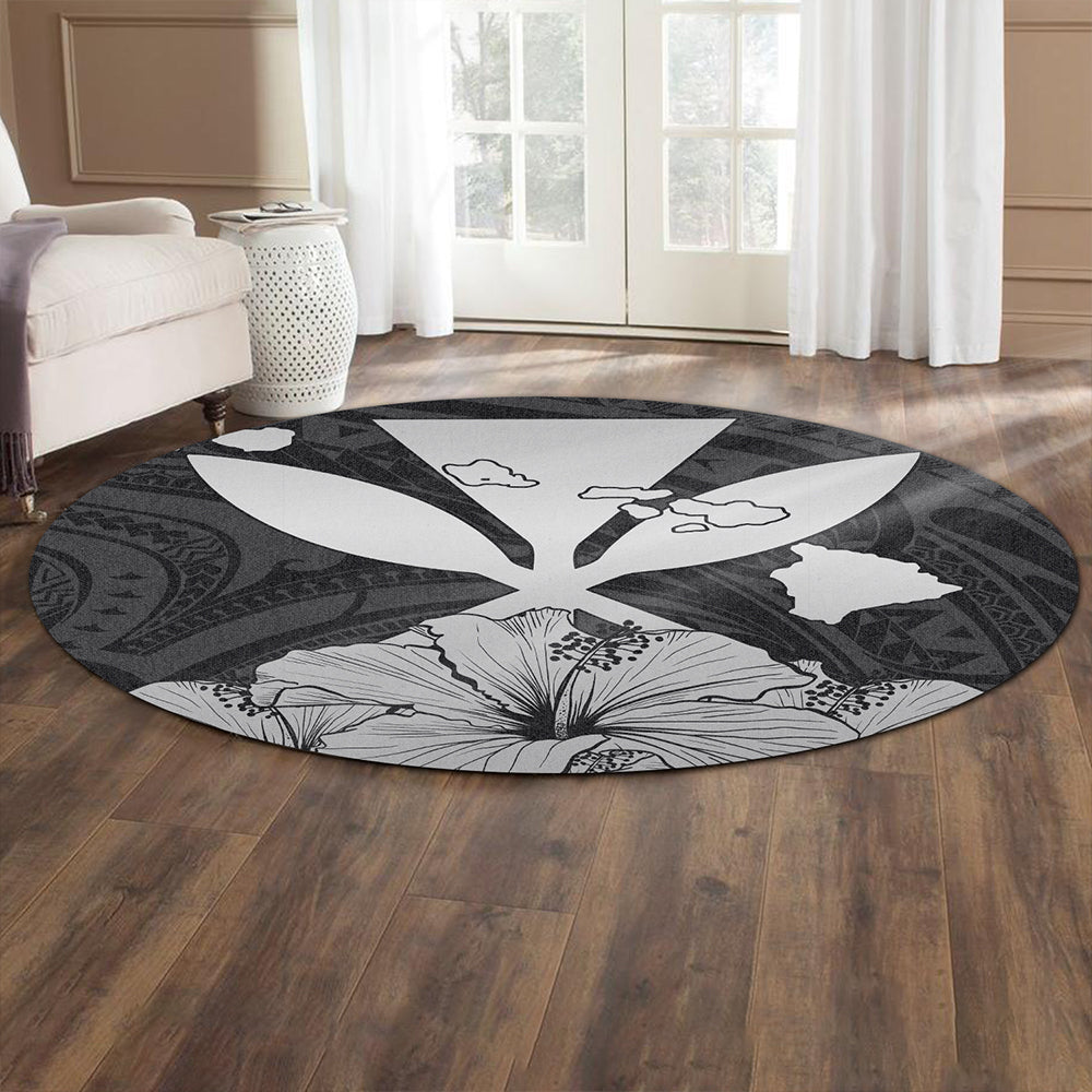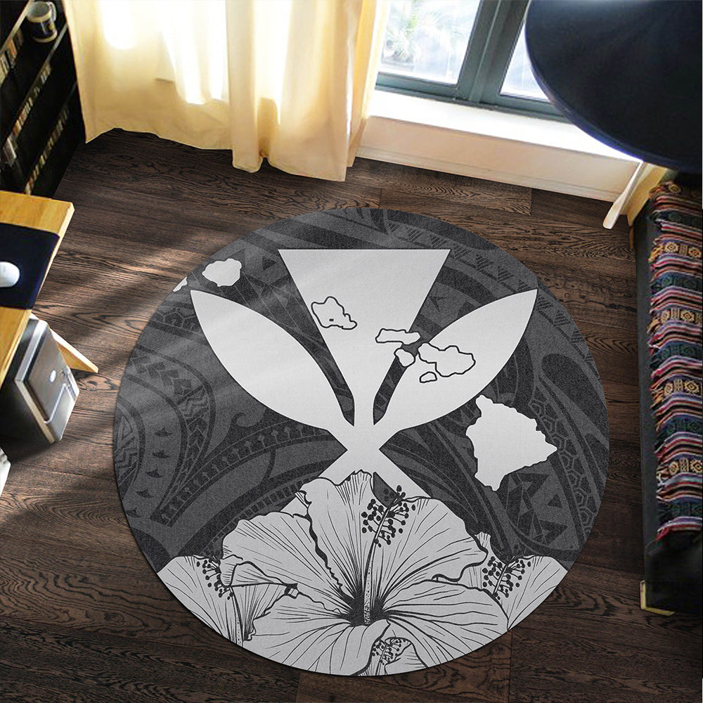 Hawaiian Round Rug Kanaka Maoli Hibiscus Polynesian Love Gray