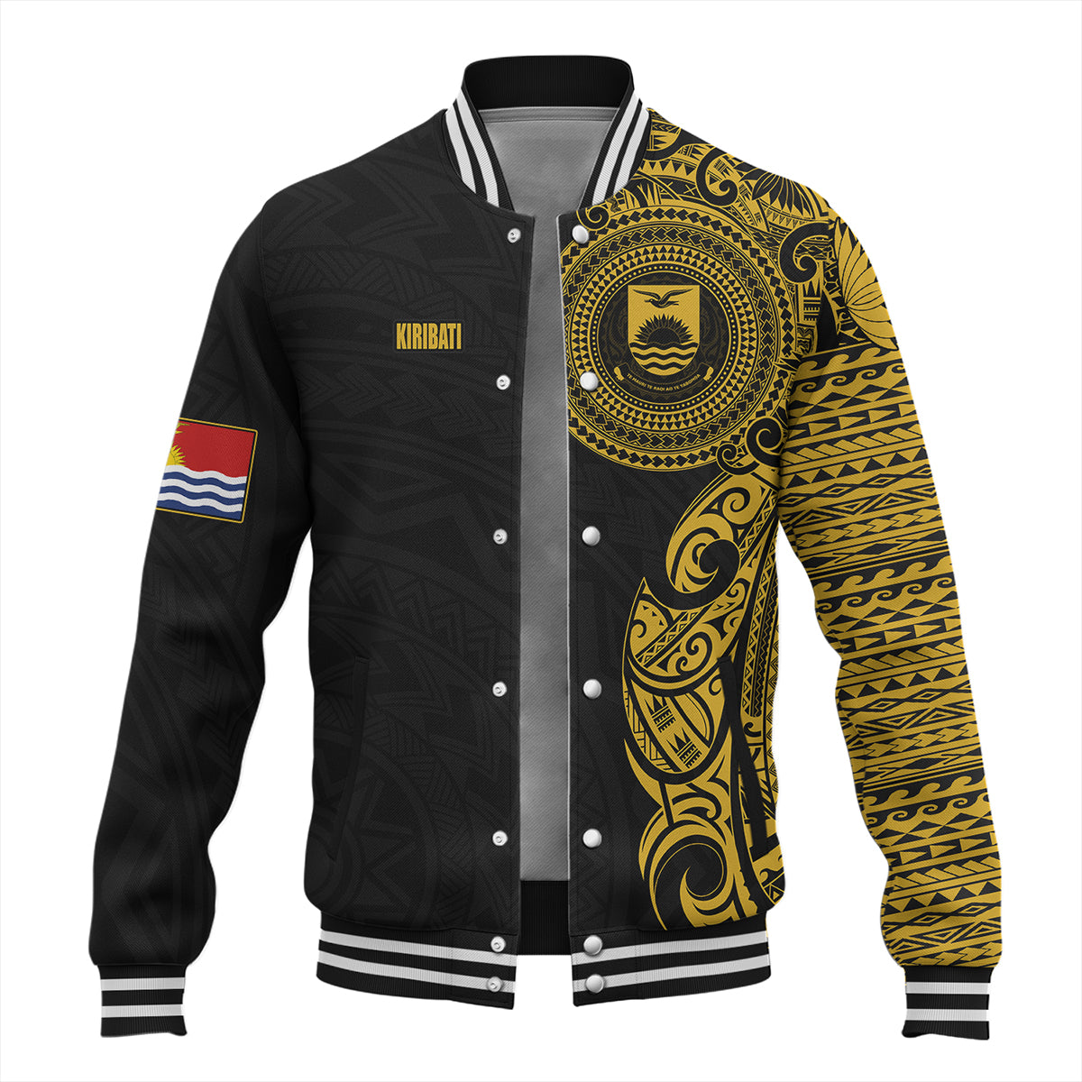 Kiribati Baseball Jacket Custom Polynesian Half Sleeve Gold Tattoo With Seal Black