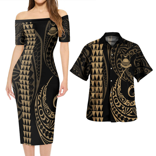 Kiribati Combo Short Sleeve Dress And Shirt Kakau Style Gold