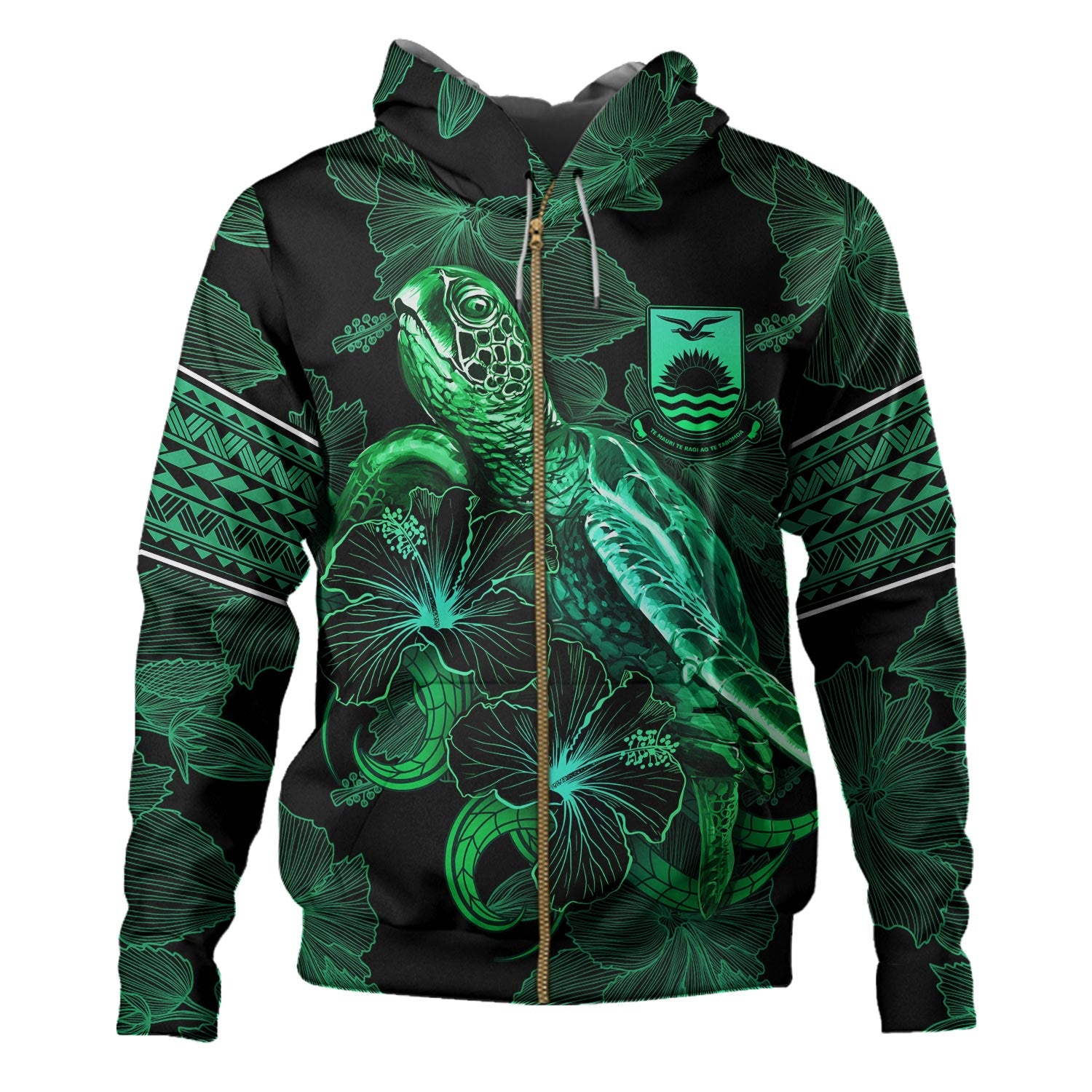 Kiribati Hoodie Sea Turtle With Blooming Hibiscus Flowers Tribal Green