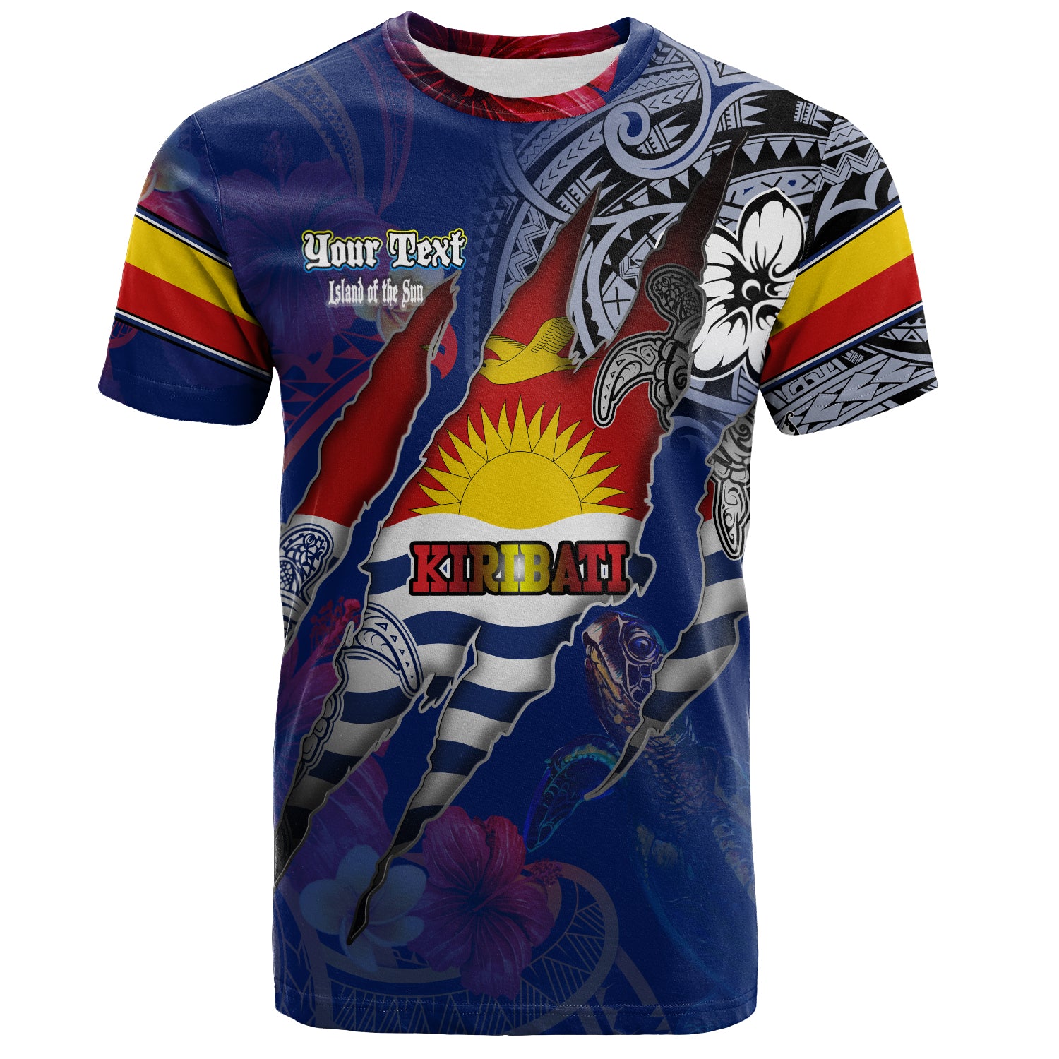 Kiribati T-Shirt Custom Gilbertese Blood Inside Me Polynesian Sleeve Tattoo Tropical Blue