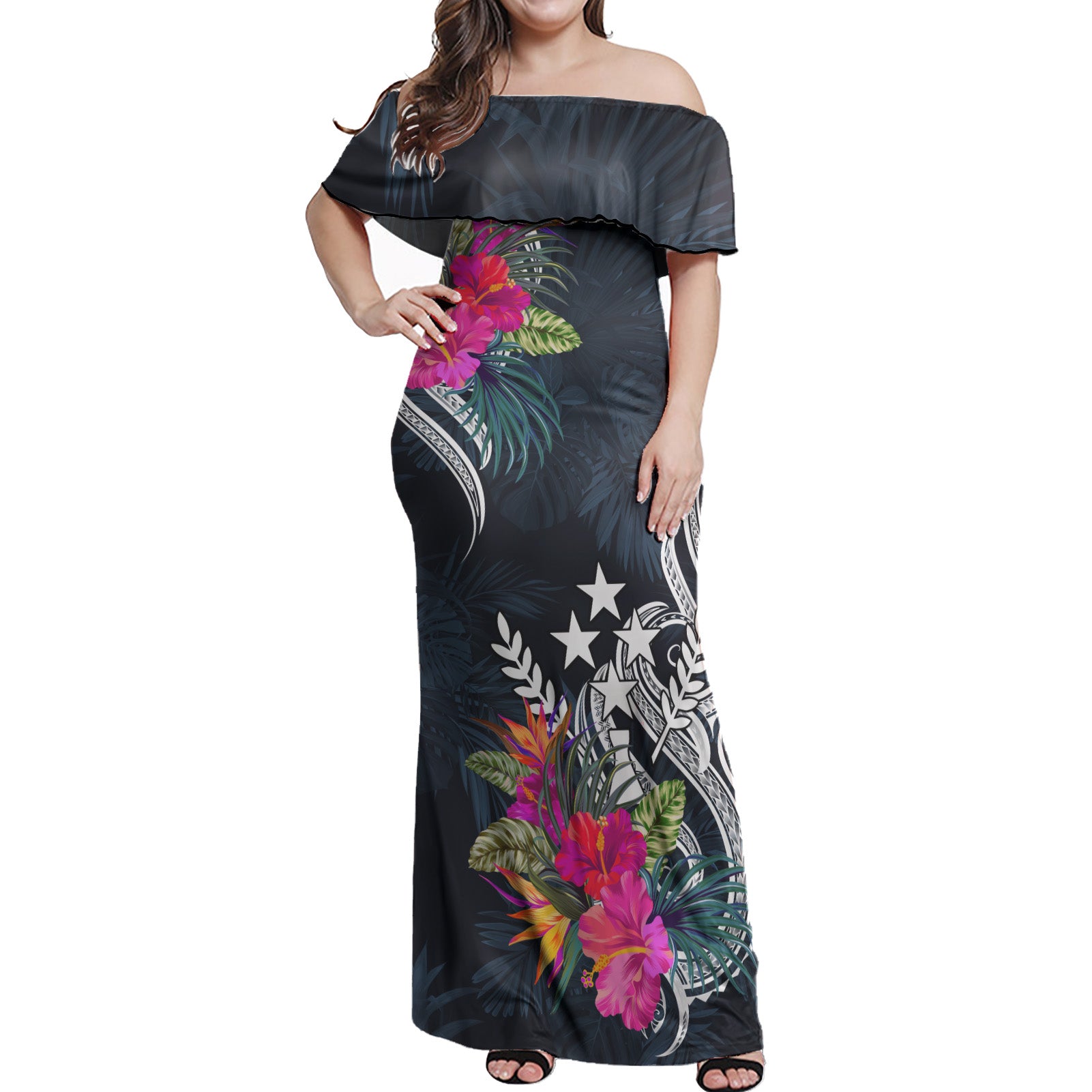 Kosrae Combo Off Shoulder Long Dress And Shirt Tropical Flower