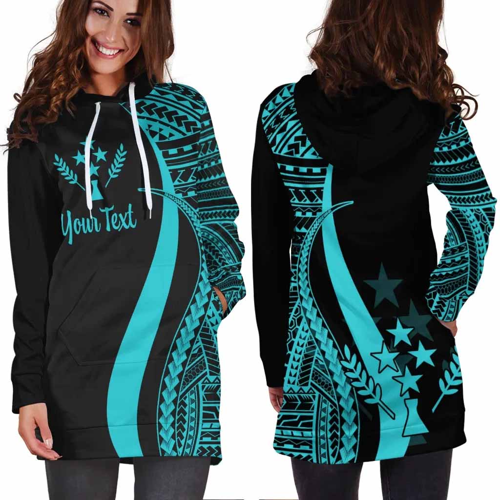 Kosrae Custom Personalised Hoodie Dress - Turquoise Polynesian Tentacle Pattern