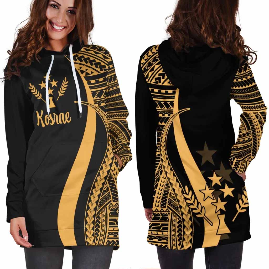 Kosrae Female Hoodie Dress - Gold Polynesian Tentacle Tribal Pattern