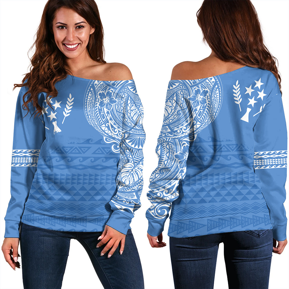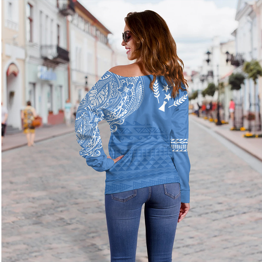 Kosrae Off Shoulder Sweatshirt Polynesian Flag With Coat Of Arms