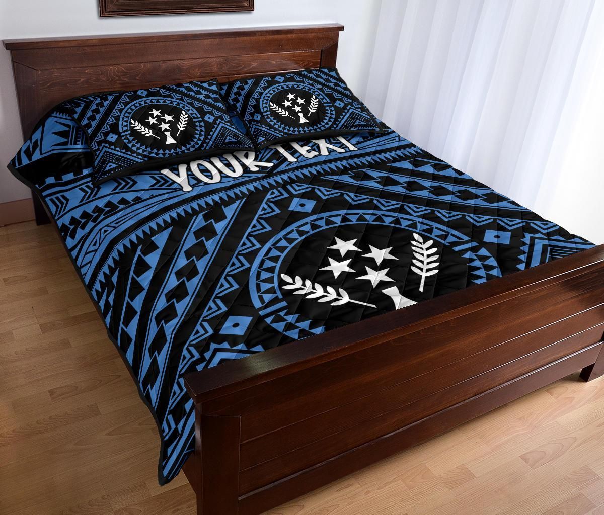 Kosrae Personalised Quilt Bed Set - Kosrae Flag In Polynesian Tattoo Style (Blue)