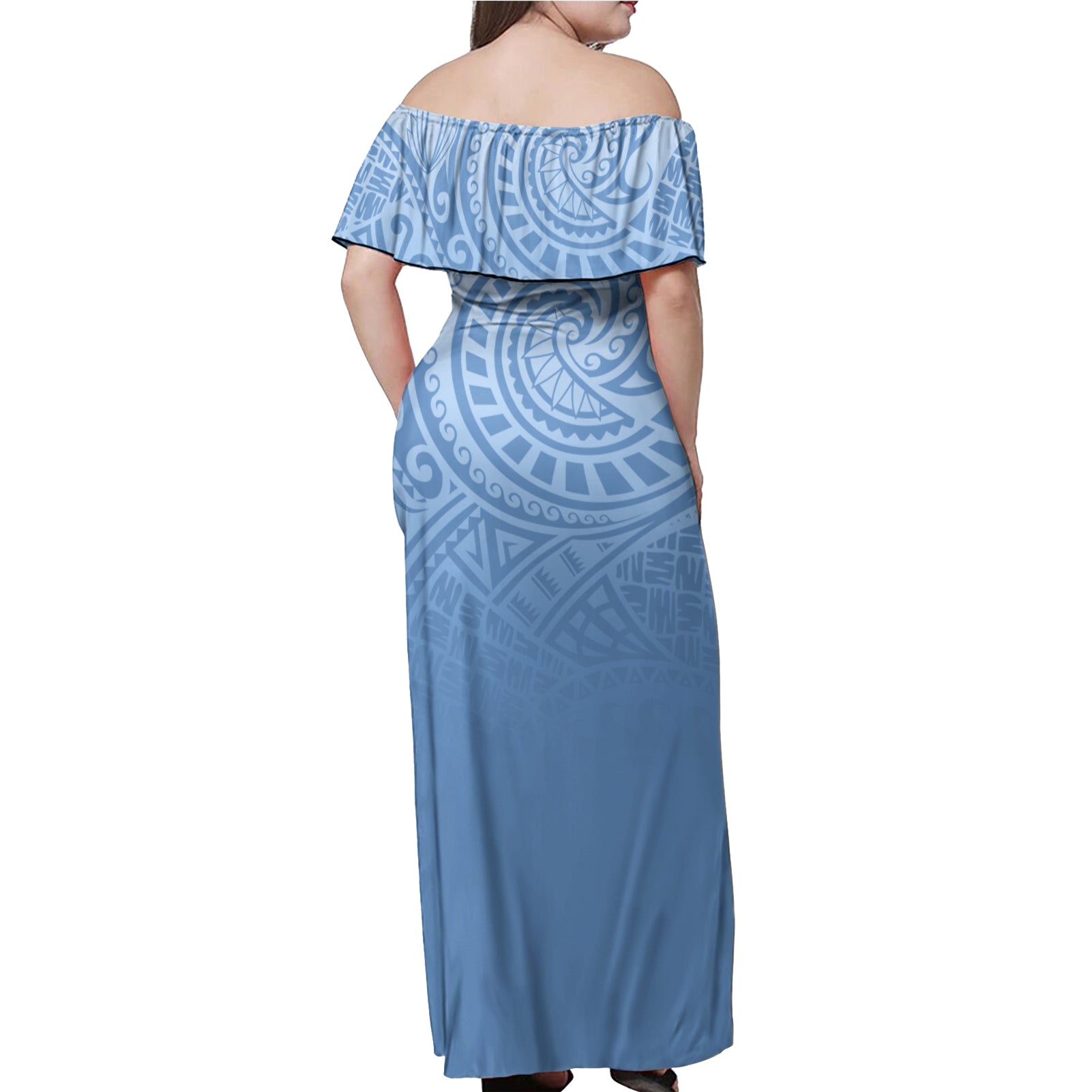 Kosrae State Flag Color With Traditional Patterns Women Off Shoulder Long Dress