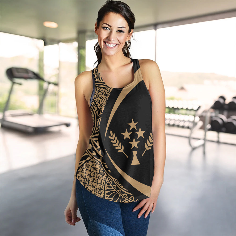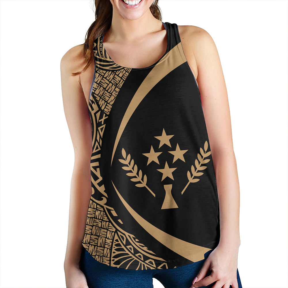 Kosrae Women Tank Coat Of Arm Lauhala Gold Circle