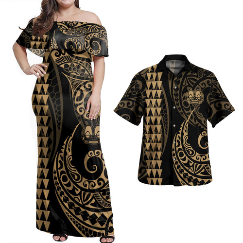 Marquesas Islands Combo Dress And Shirt Kakau Style Gold