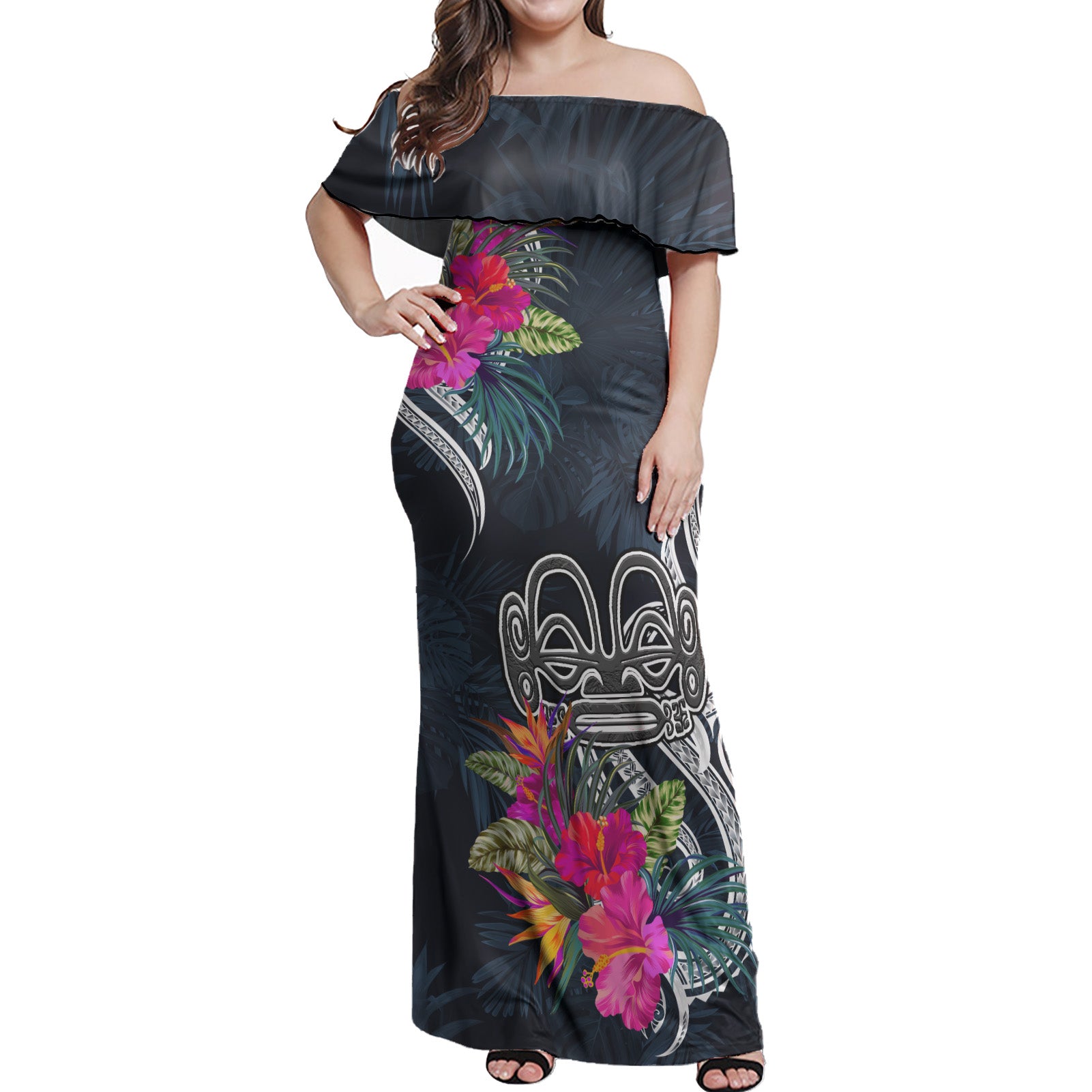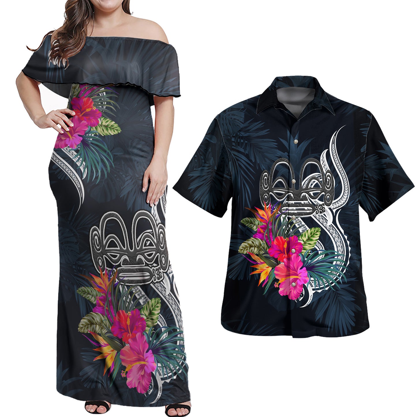 Marquesas Islands Combo Off Shoulder Long Dress And Shirt Tropical Flower
