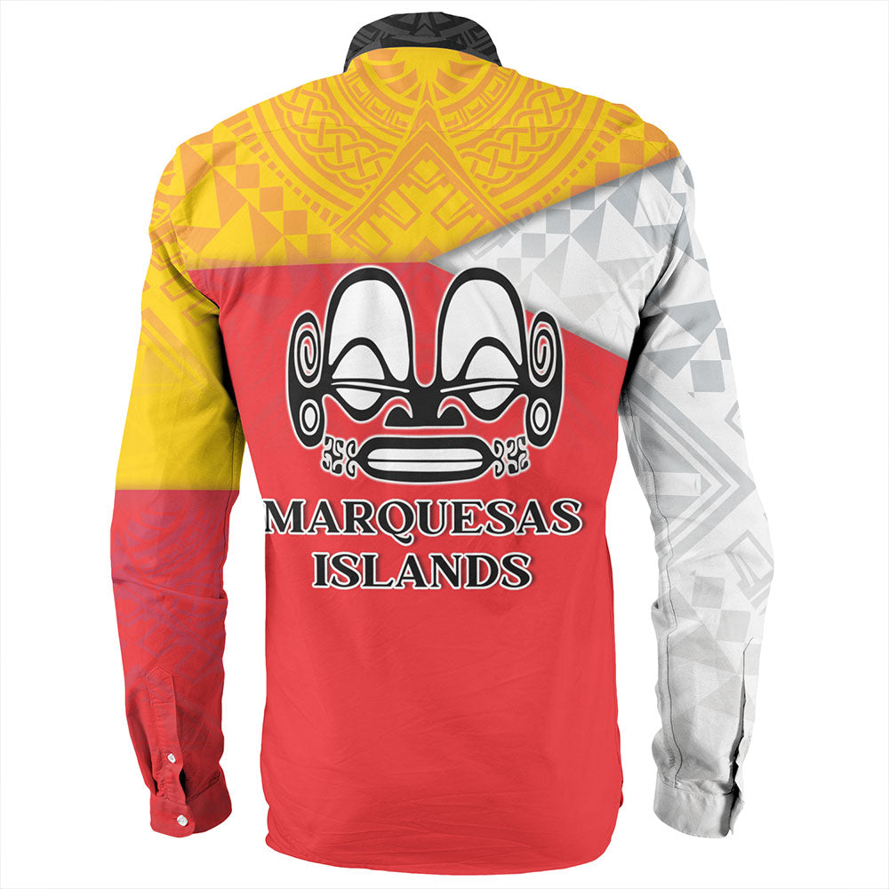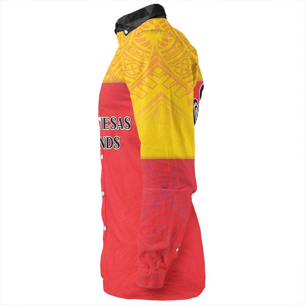 Marquesas Islands Long Sleeve Shirt Flag Color With Traditional Patterns
