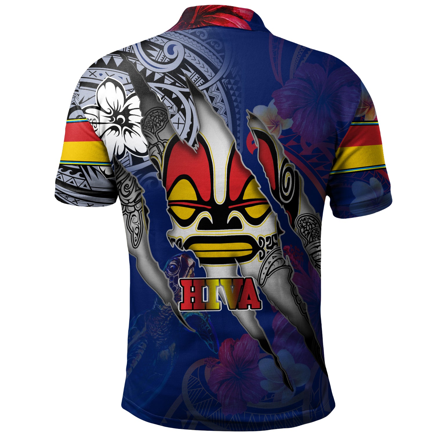 Marquesas Islands Polo Shirt Custom Marquesan Blood Inside Me Polynesian Sleeve Tattoo Tropical Blue