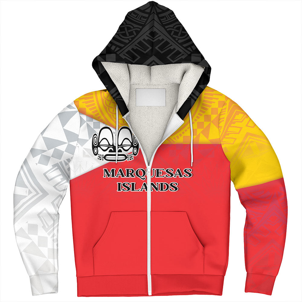 Marquesas Islands Sherpa Hoodie Flag Color With Traditional Patterns
