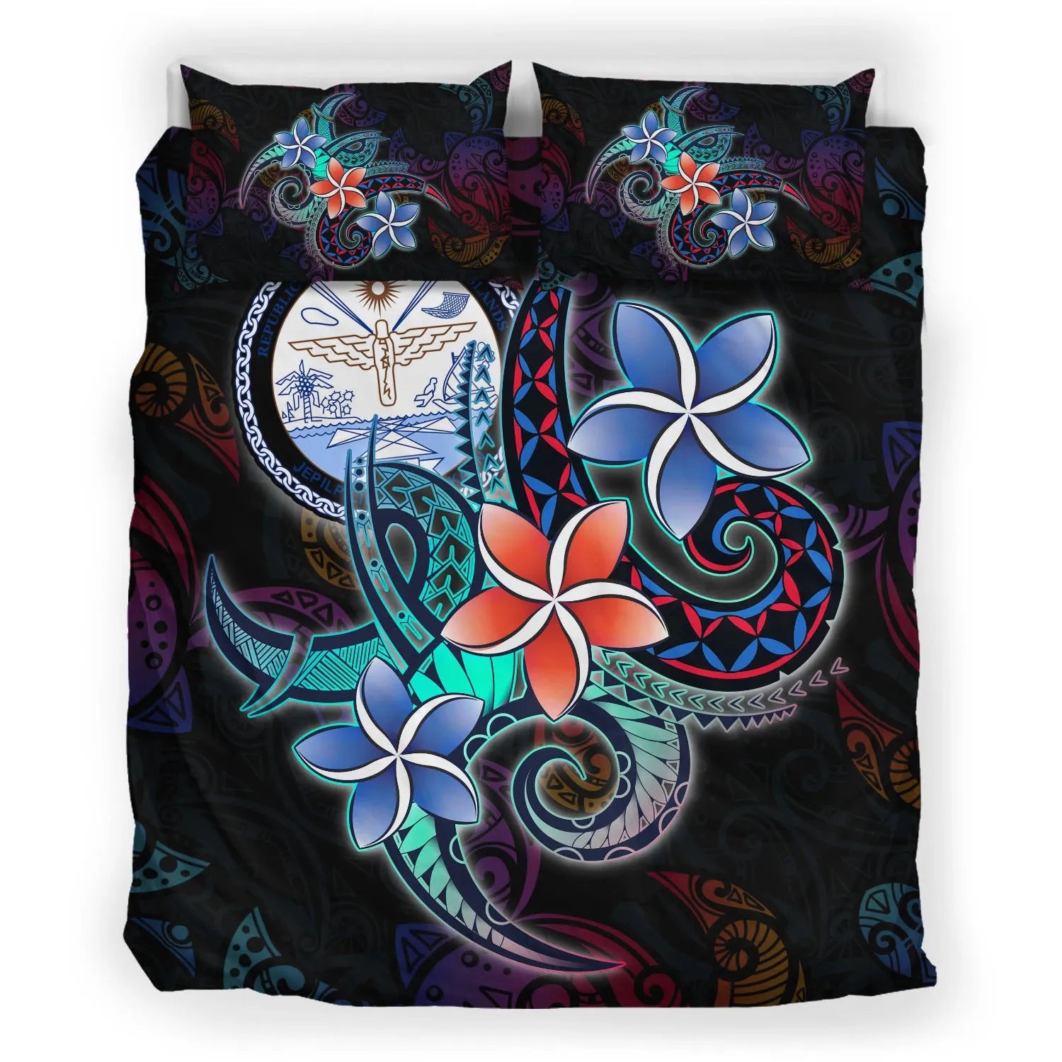 Marshall Islands Bedding Set - Plumeria Flowers Style