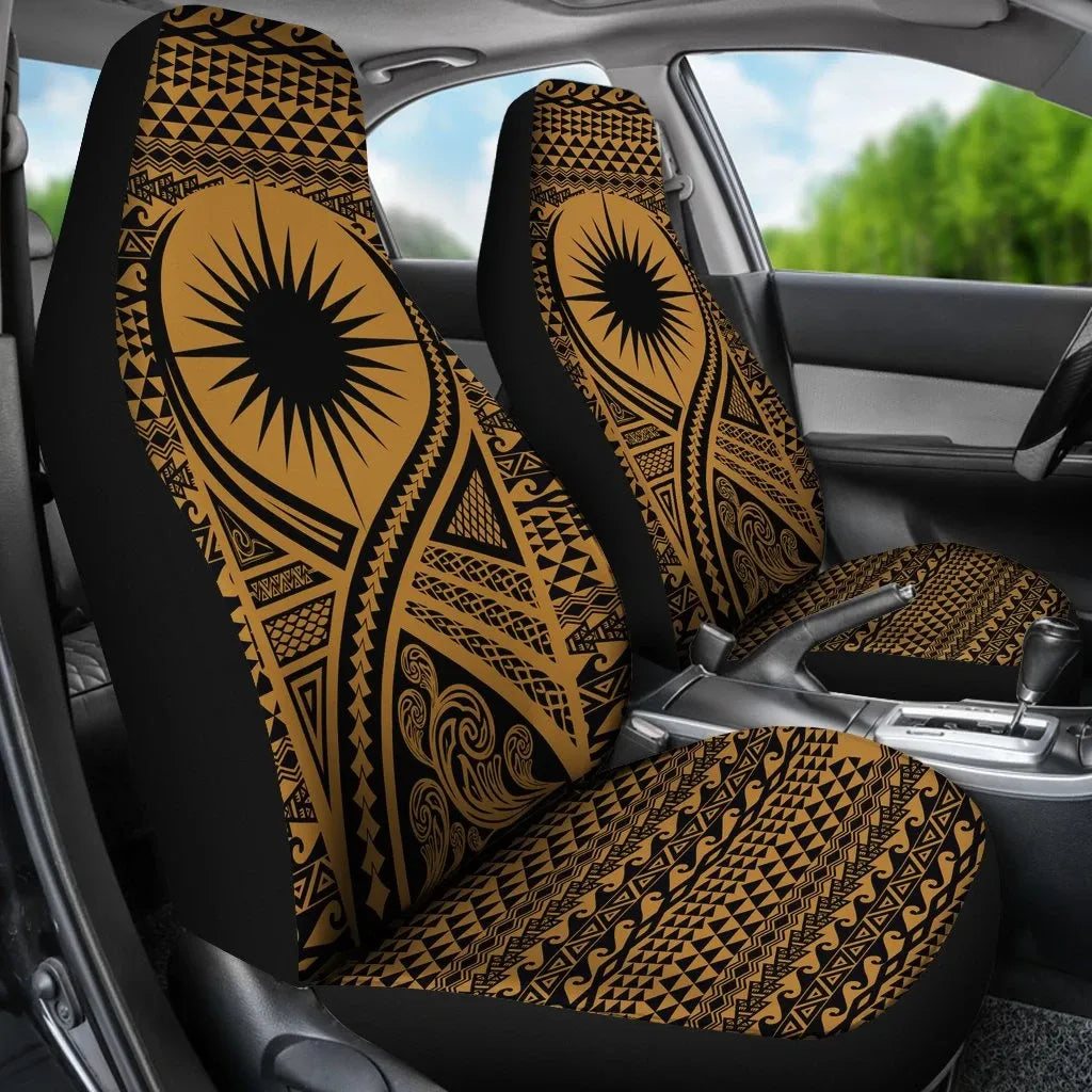 Marshall Islands Car Seat Cover - Marshall Islands Flag Polynesian Tattoo Gold