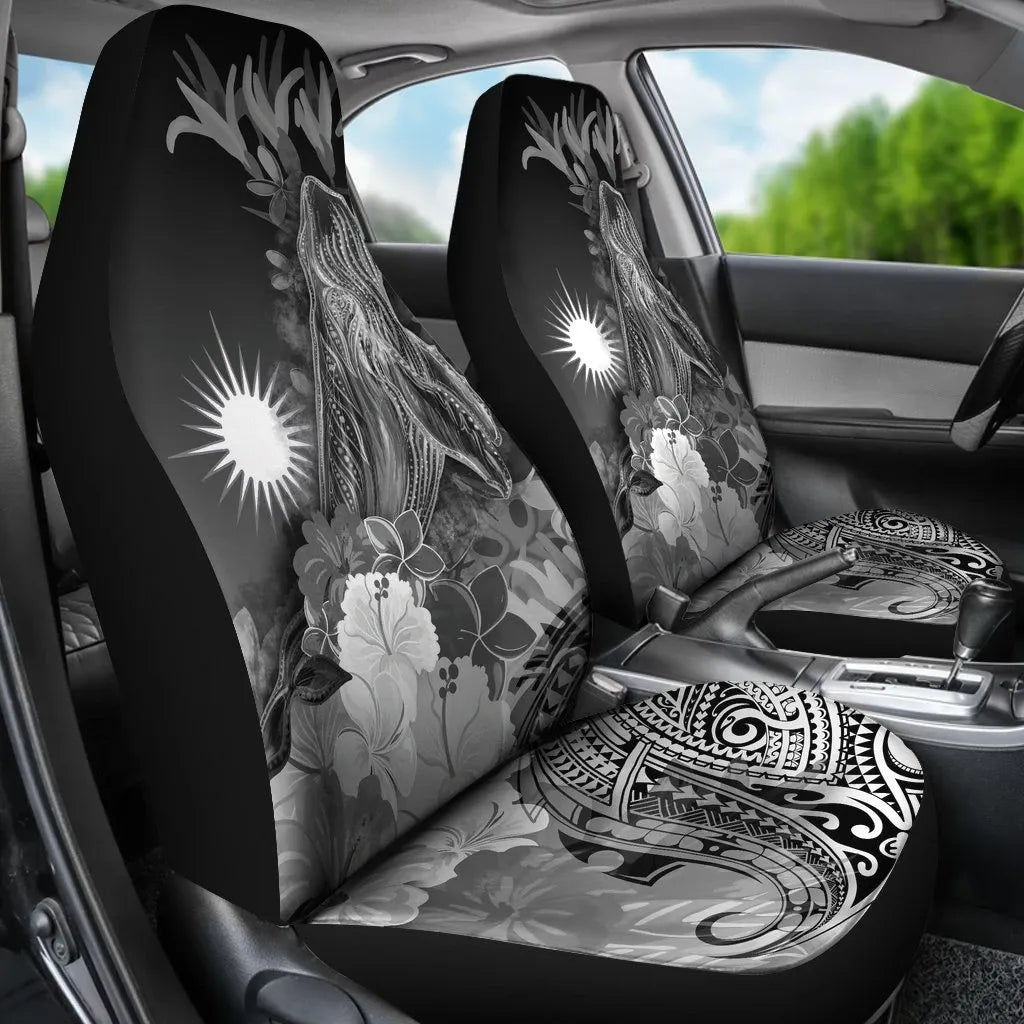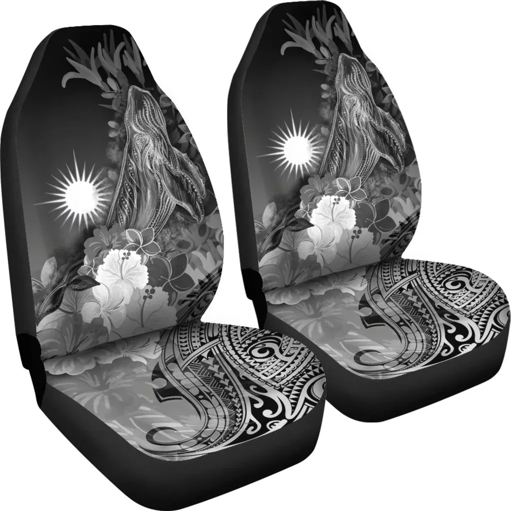 Marshall Islands Car Seat Covers - Humpback Whale with Tropical Flowers (White)