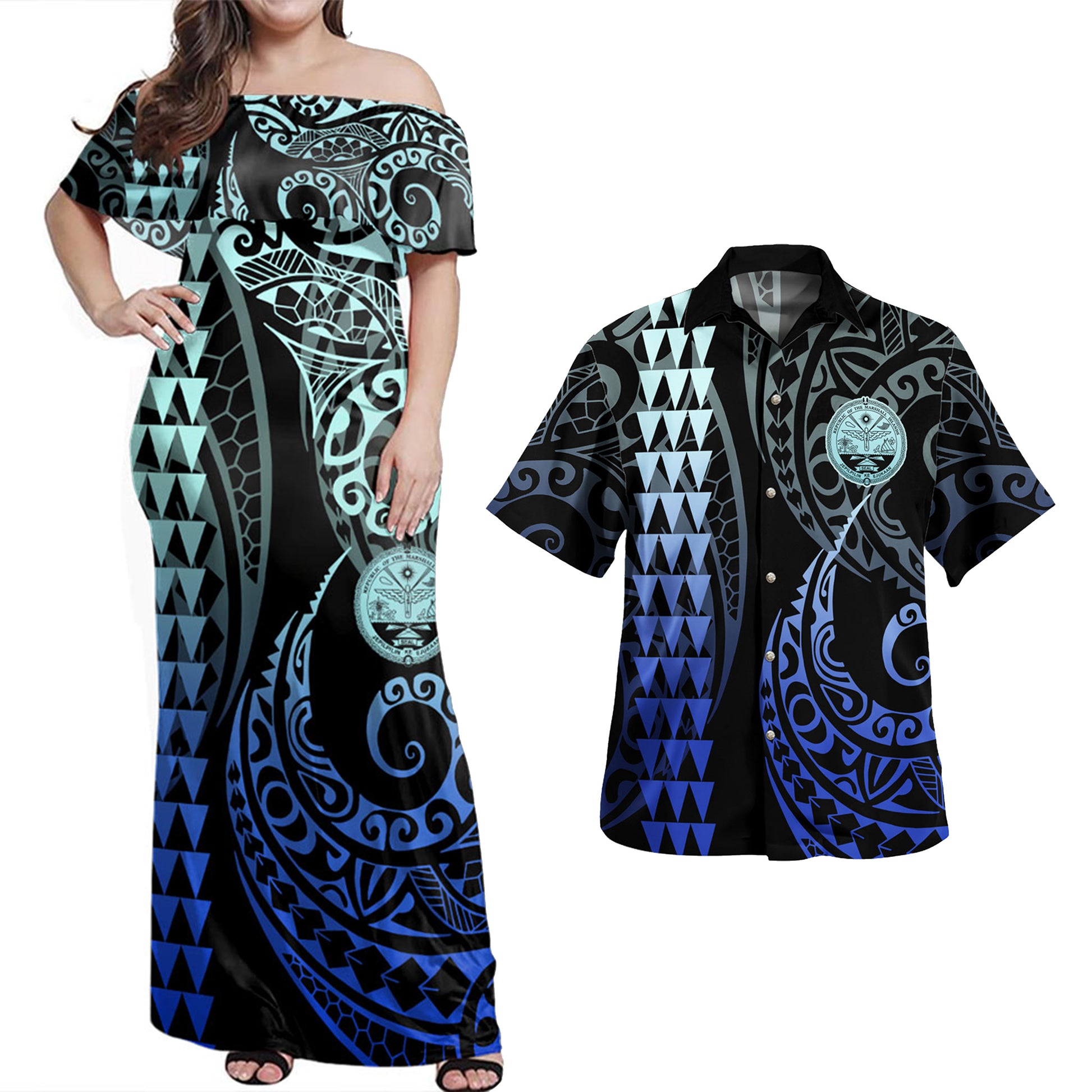 Marshall Islands Combo Dress And Shirt Kakau Style Gradient Blue