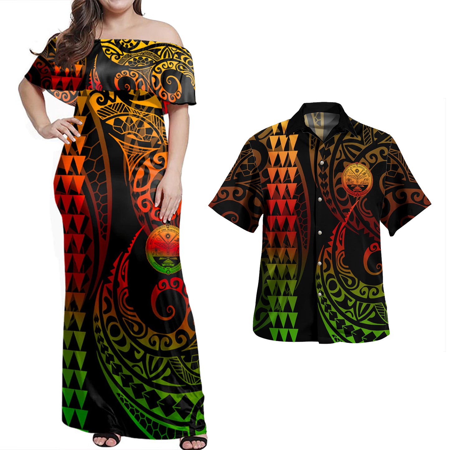 Marshall Islands Combo Dress And Shirt Kakau Style Reggae