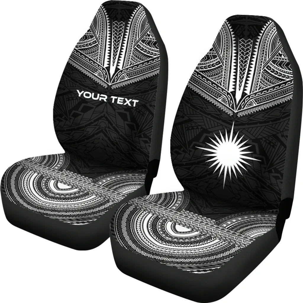 Marshall Islands Custom Personalised Car Seat Cover - Marshall Islands Flag Polynesian Chief Tattoo Black Version