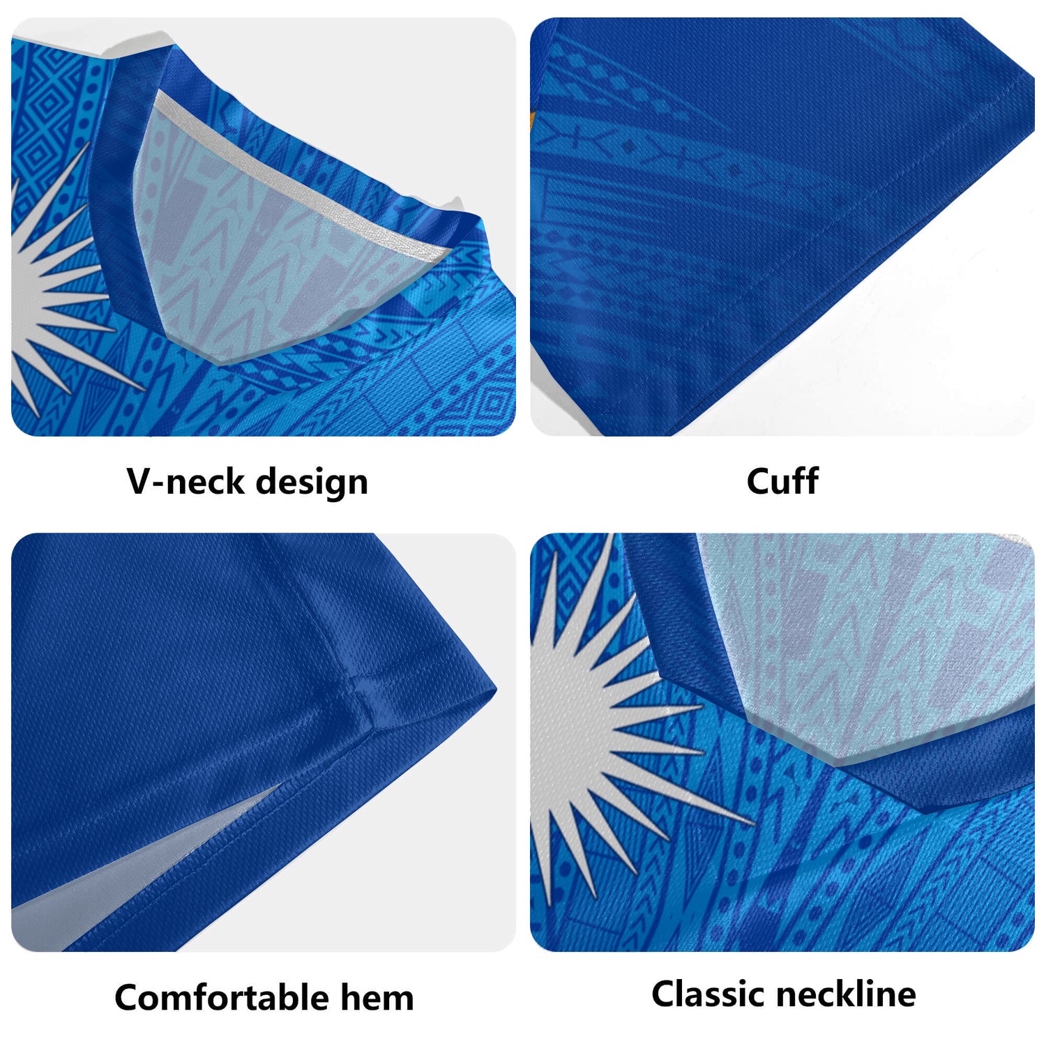 Marshall Islands Flag Color With Traditional Patterns Men's All Over Printing Rugby Jersey