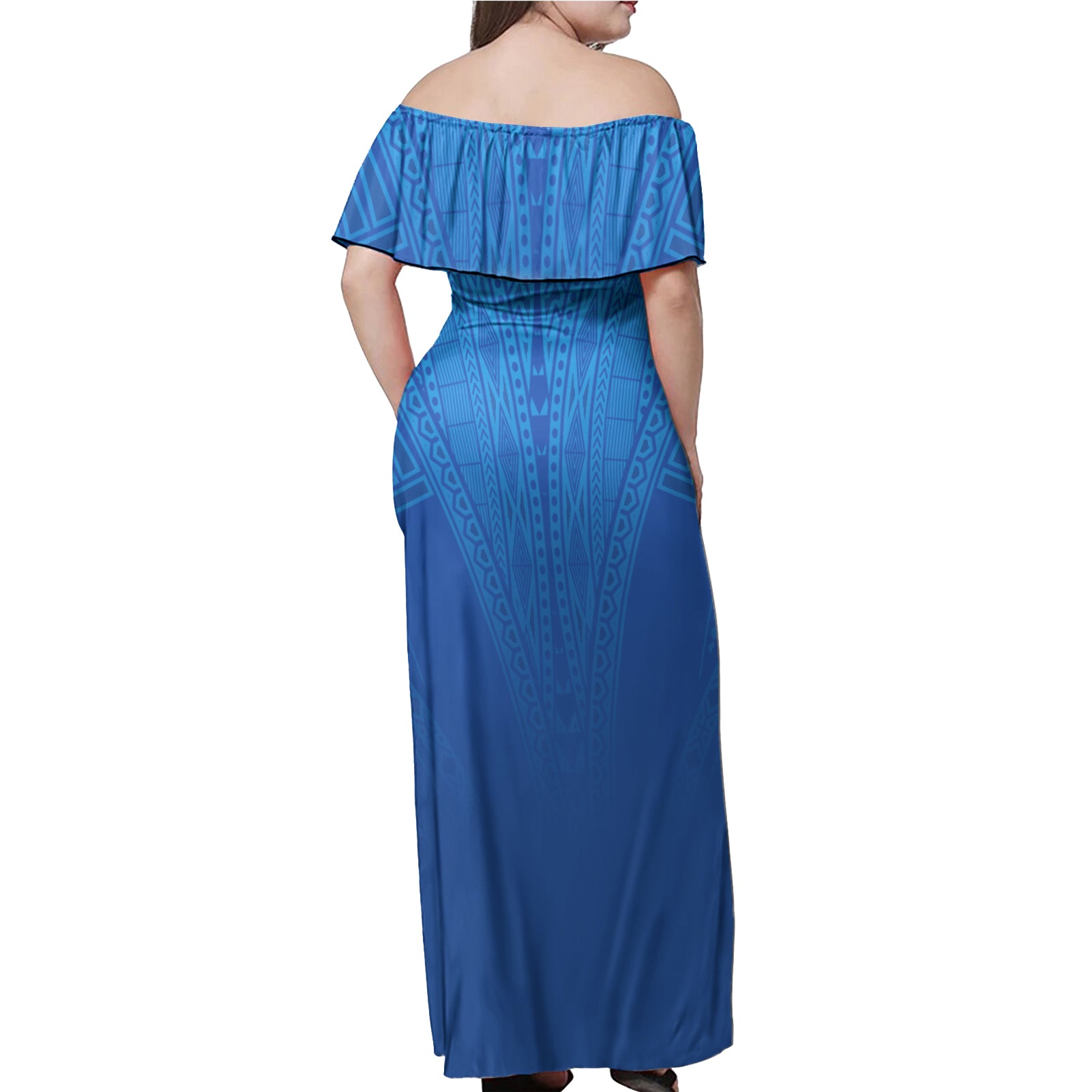 Marshall Islands Flag Color With Traditional Patterns Women Off Shoulder Long Dress