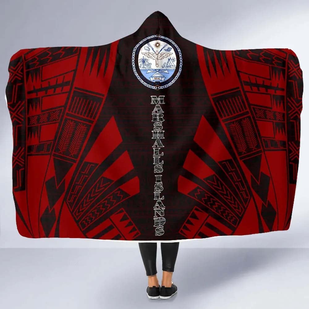Marshall Islands Hooded Blanket - Polynesian Tattoo Red
