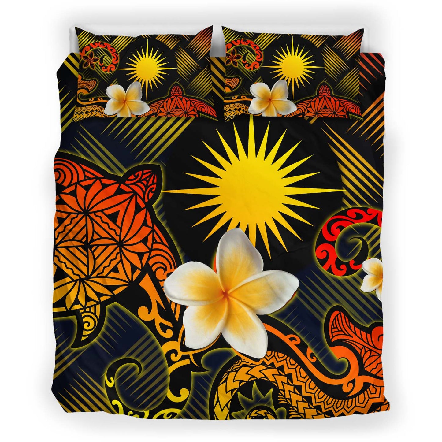 Marshall Islands Polynesian Bedding Set - Lauhala Turtle Plumeria Tropical