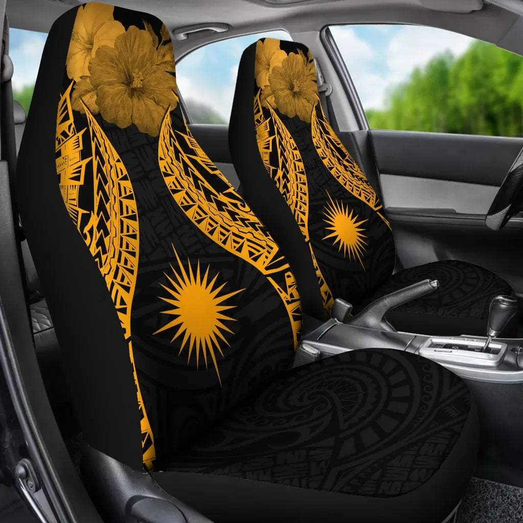Marshall Islands Polynesian Car Seat Covers Pride Seal And Hibiscus Gold